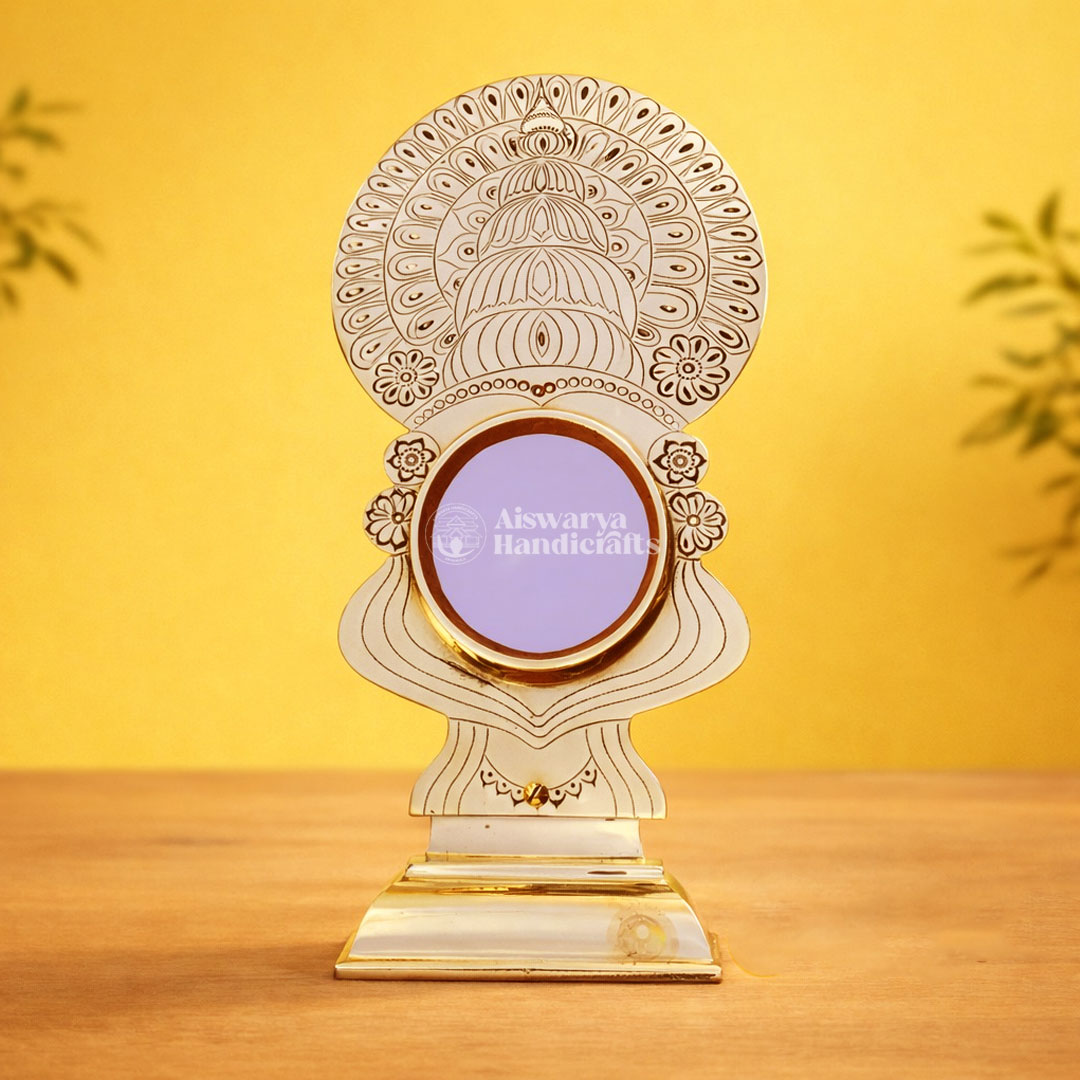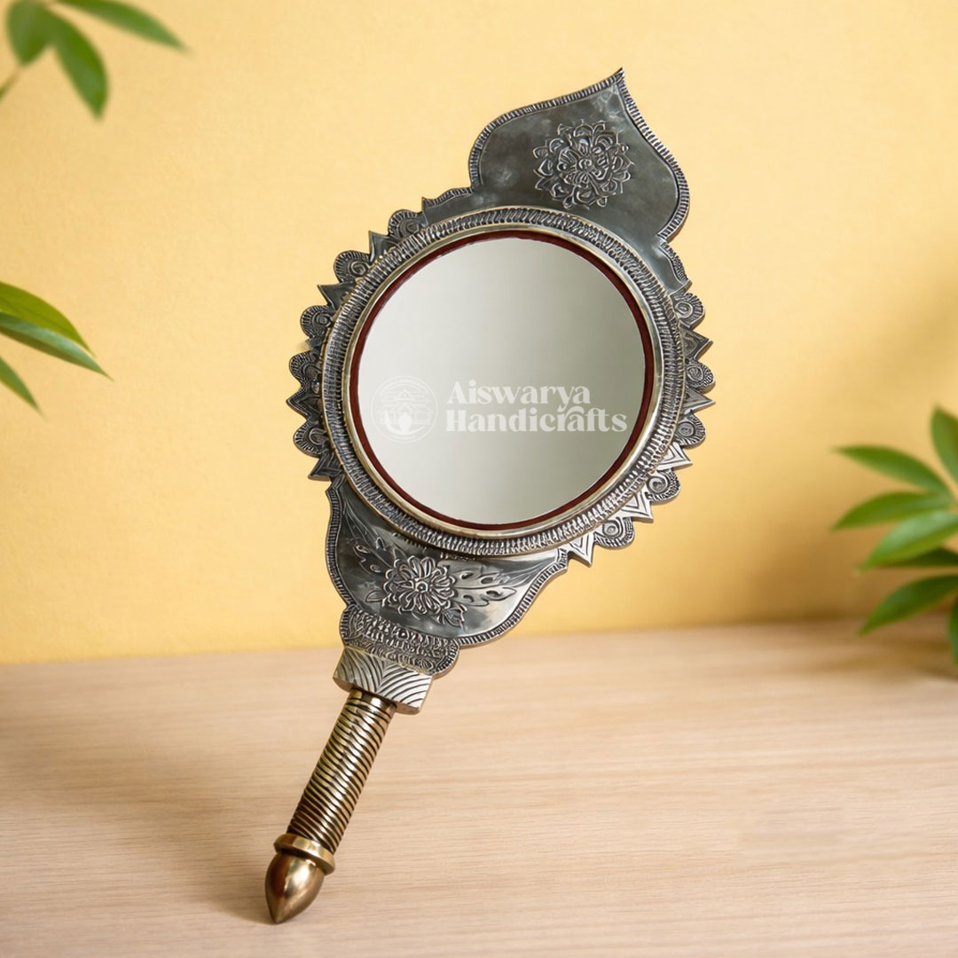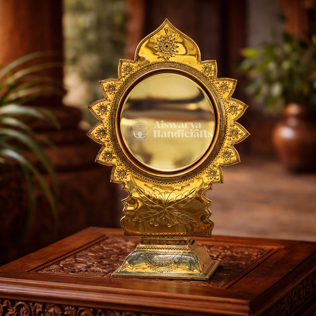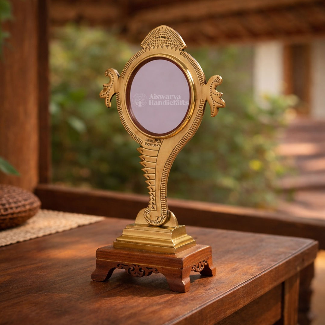Aiswarya Handicrafts proudly presents the authentic Aranmula Kannadi, Kerala’s legendary handmade metal mirror admired for its divine charm and heritage. Each mirror is carefully crafted by skilled artisans, preserving a secret tradition passed down through generations, making every piece unique and timeless.