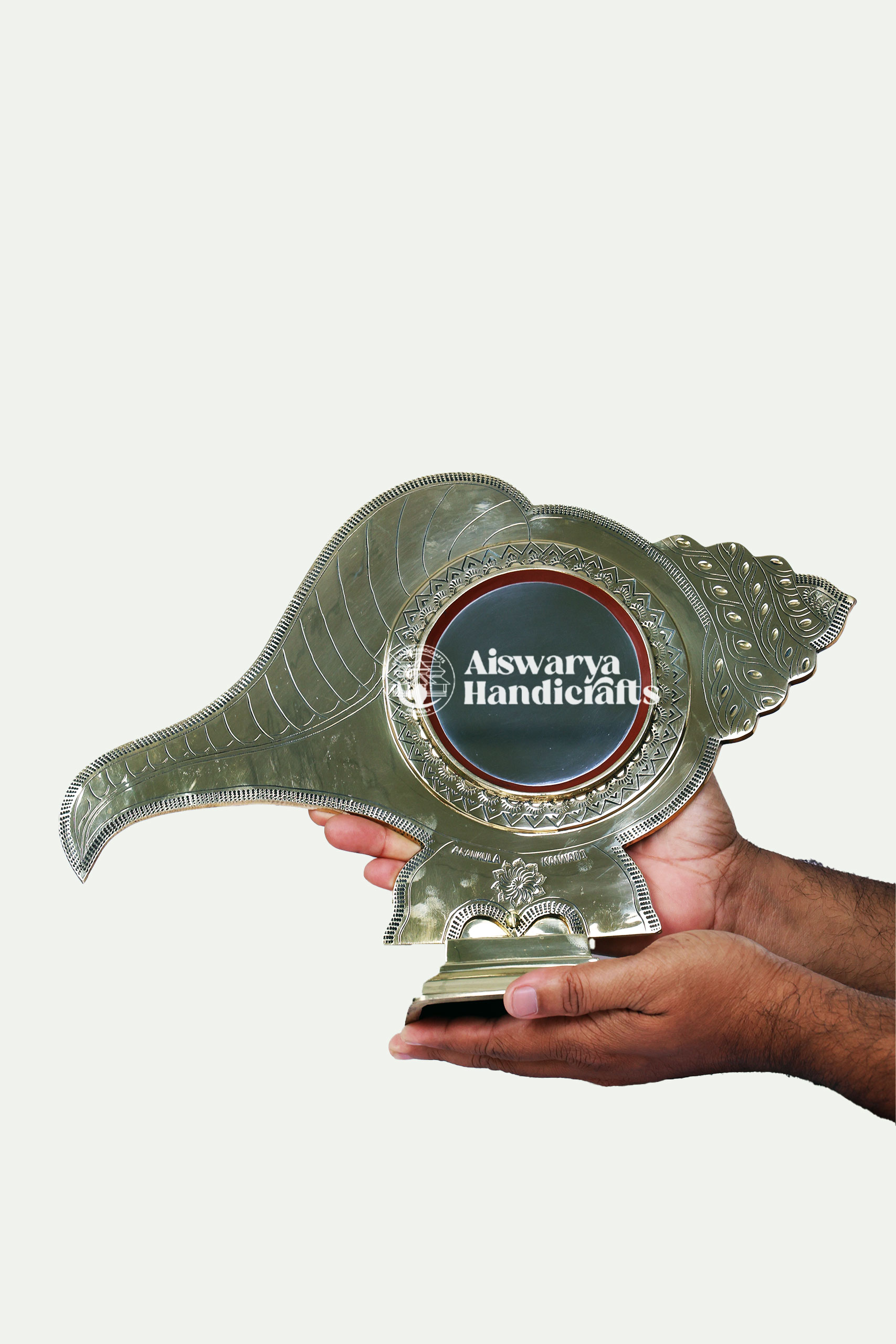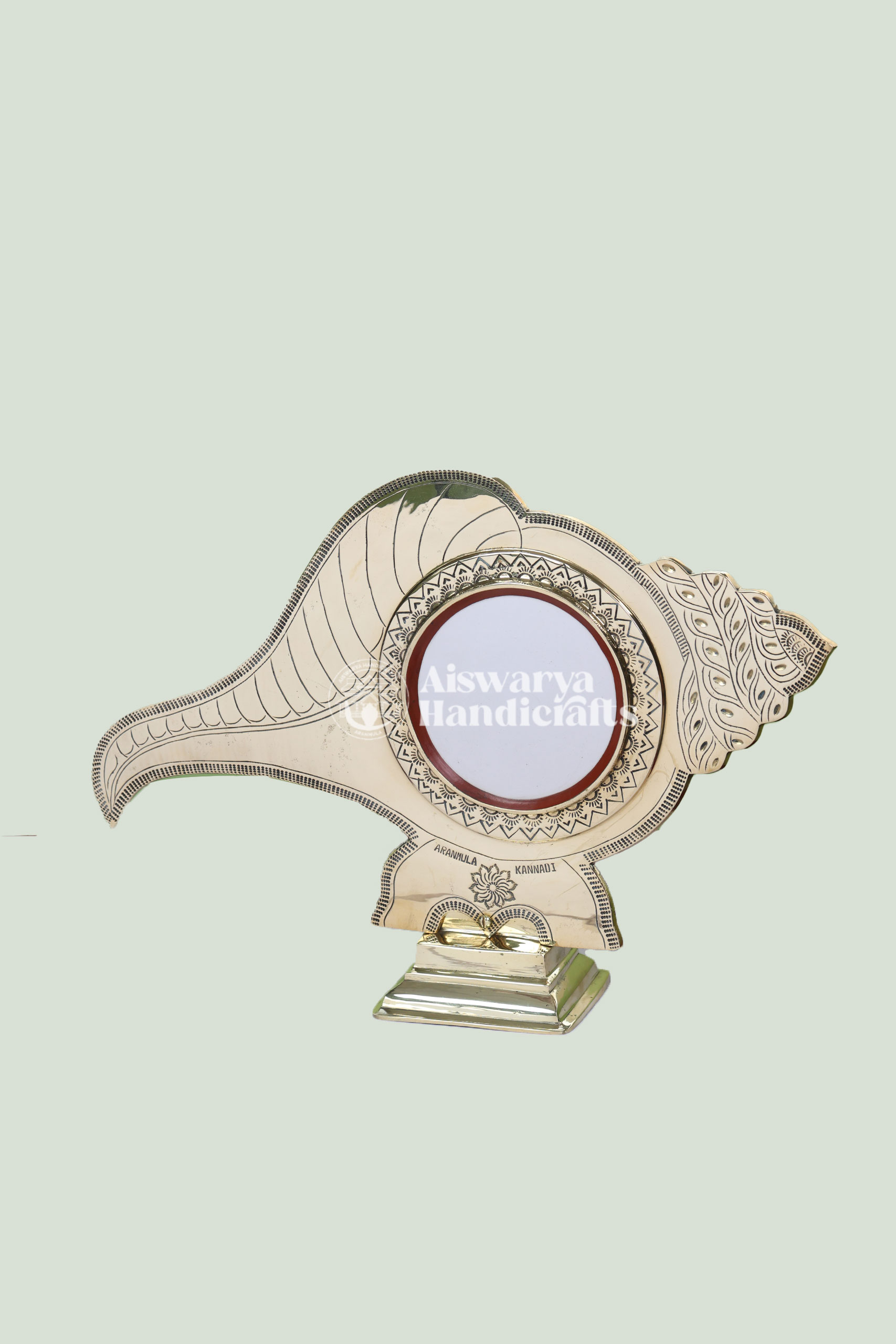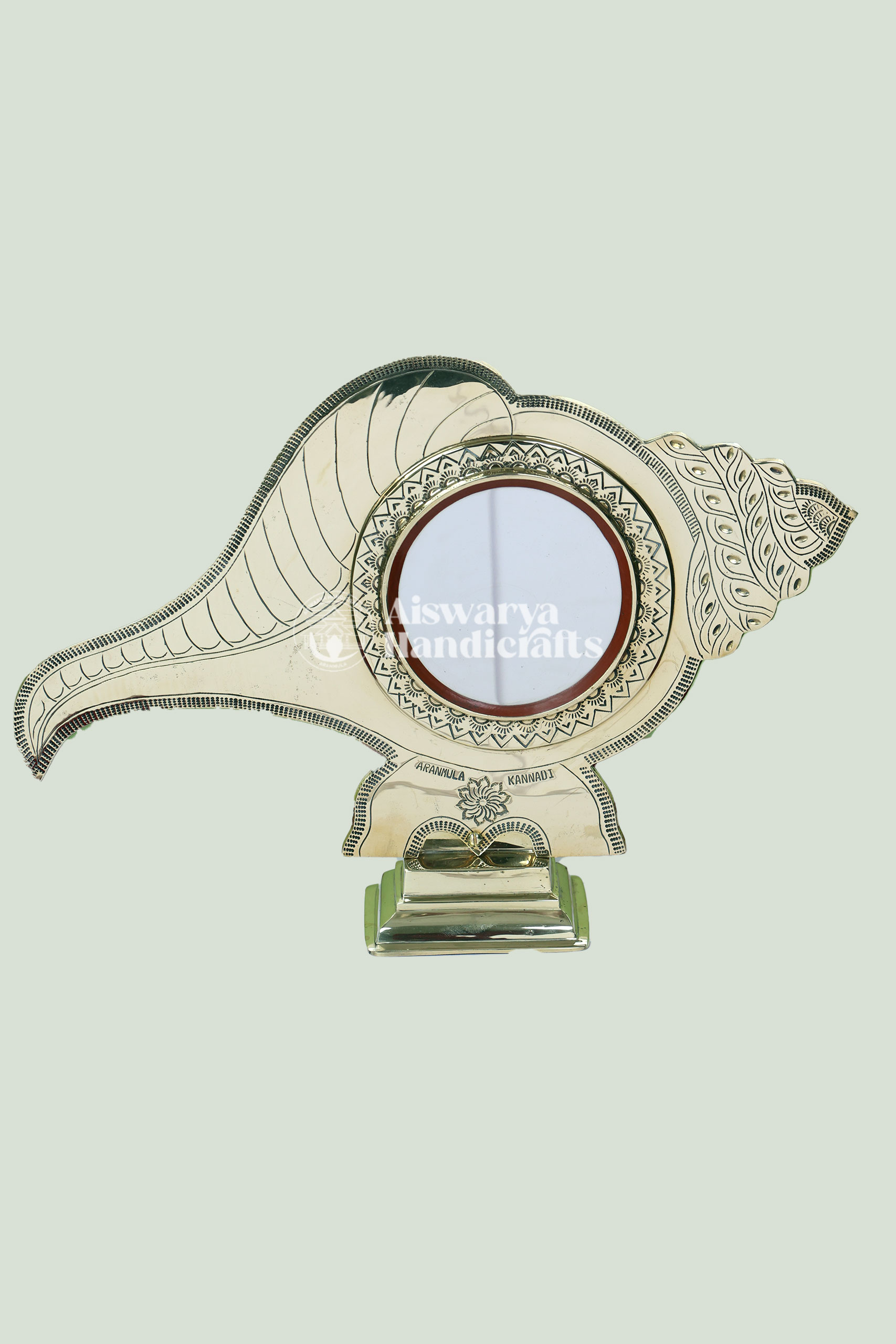 This Peedam Model Aranmula Kannadi is a beautifully crafted traditional mirror that reflects the timeless heritage of Kerala. Designed with a sturdy peedam (base), it combines elegance, stability, and authentic craftsmanship perfect for pooja rooms, living spaces, and ceremonial gifting.